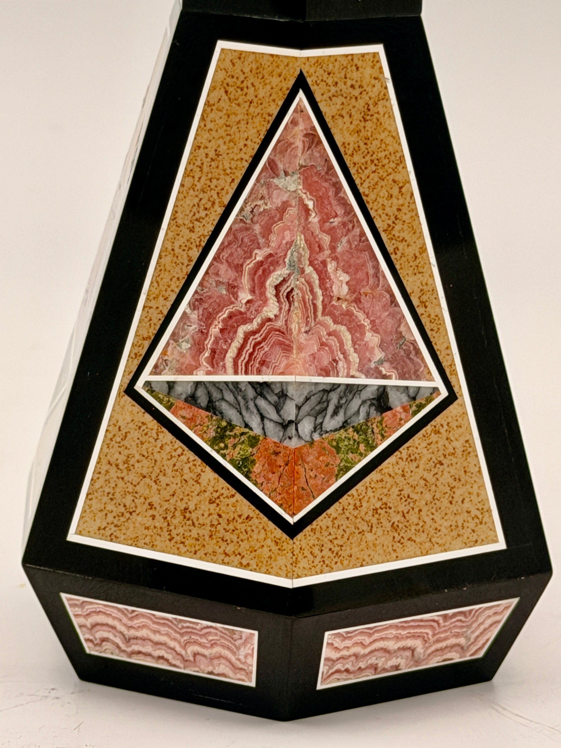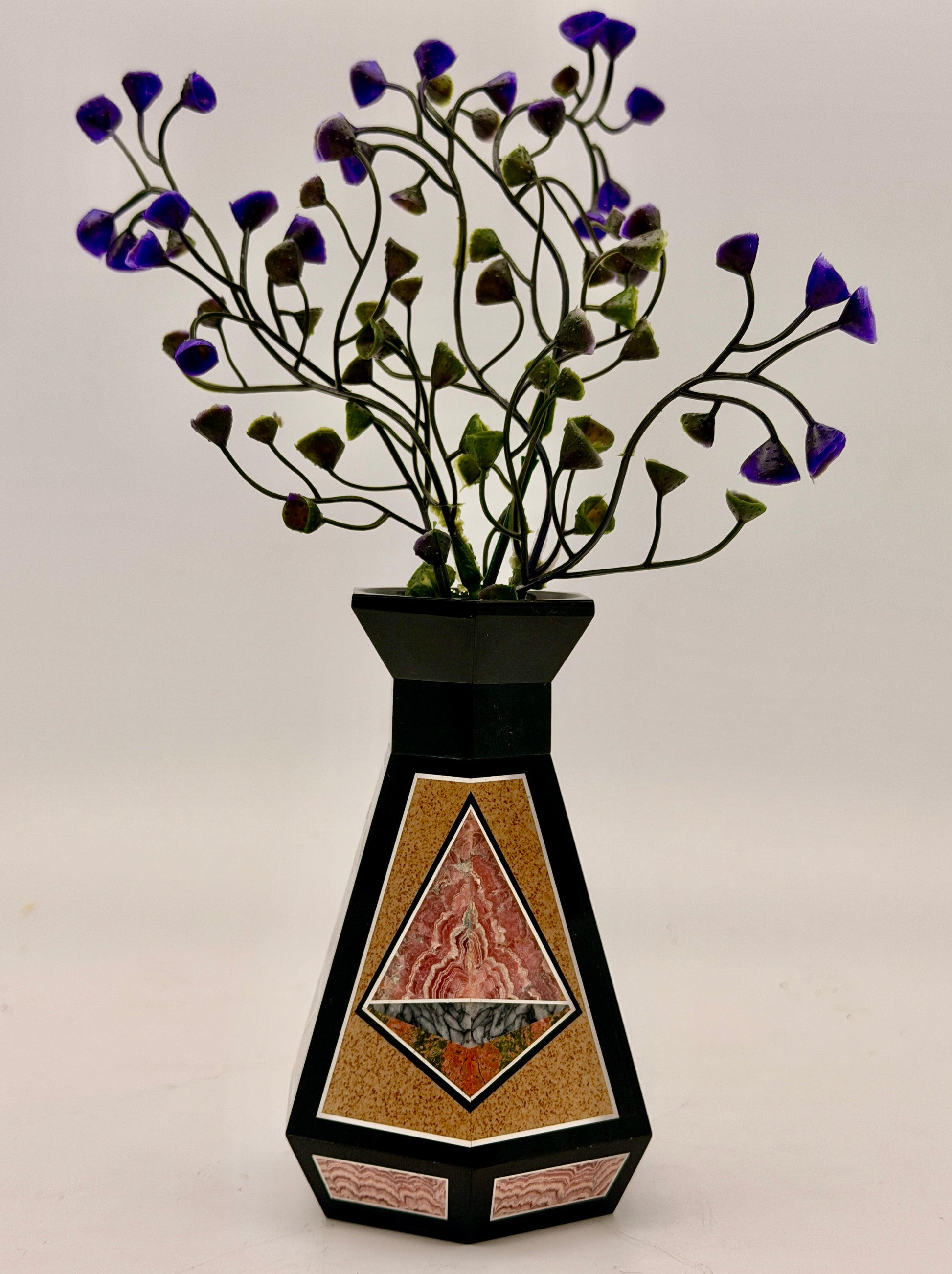 1 - Vase - 4.5 H x 3 W in - Black onyx with desert jasper, Rhodochrosite, and unakite